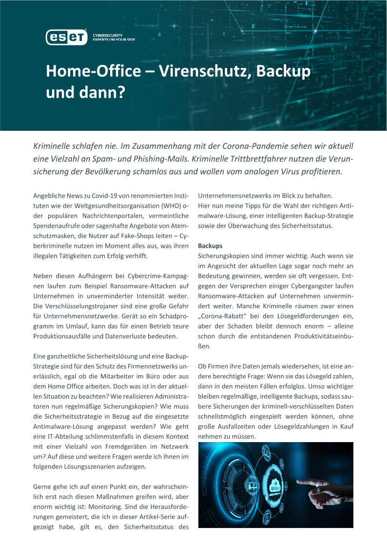 Nebenbei bemerkt sind wir ESET-Partner und geben Ihnen nachfolgend ein paar Tipps des Herstellers dieser mehrfach ausgezeichneten Software.